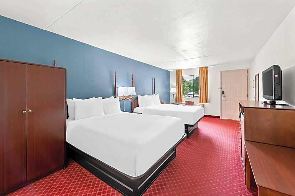 Welcome to our spacious Queen Room with Two Queen Beds - Disability Access/Non-Smoking, perfect for families or groups of up to 4 adults and 3 children. Enjoy a comfortable stay with modern amenities like a microwave, flat-screen TV, and private bathroom. Rest assured, our room is smoke-free and designed with your accessibility needs in mind.